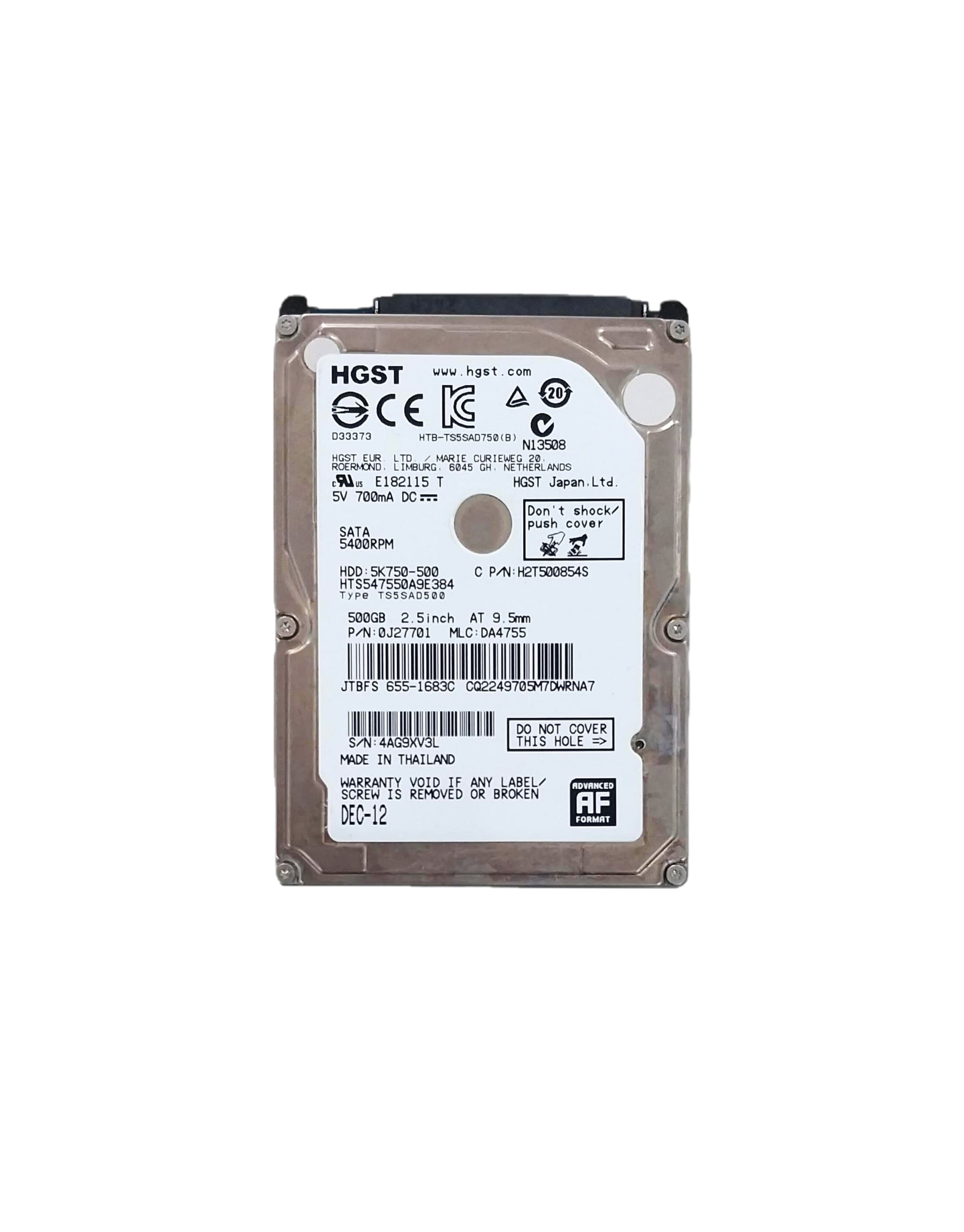 Disco Rígido para Notebook SATA 500GB HGST / 5400RPM HTS545050A7E380
